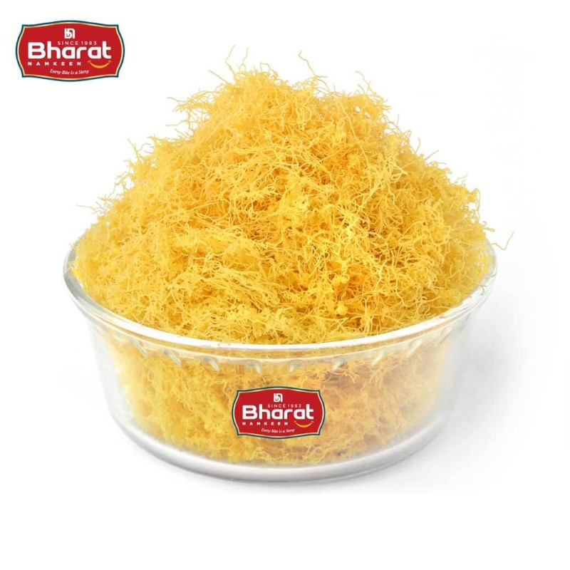 Nylon Sev is a popular Indian namkeen known for its ultra-thin strands and light, crispy texture. Made from high-quality gram flour (besan) and mild spices, this snack delivers a delicate crunch and a subtle savory taste. It is widely used as a standalone snack as well as a topping for dishes like poha, chaat, and sev usal.